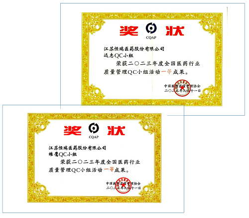 AG电子医药荣获2023年度全国医药行业质量管理QC小组活动一等奖